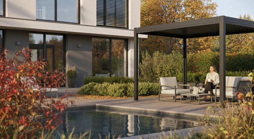 Las pérgolas bioclimáticas permiten vivir el exterior en primavera, otoño e incluso invierno, gracias a su capacidad de aislar, proteger y adaptar el entorno según la estación.